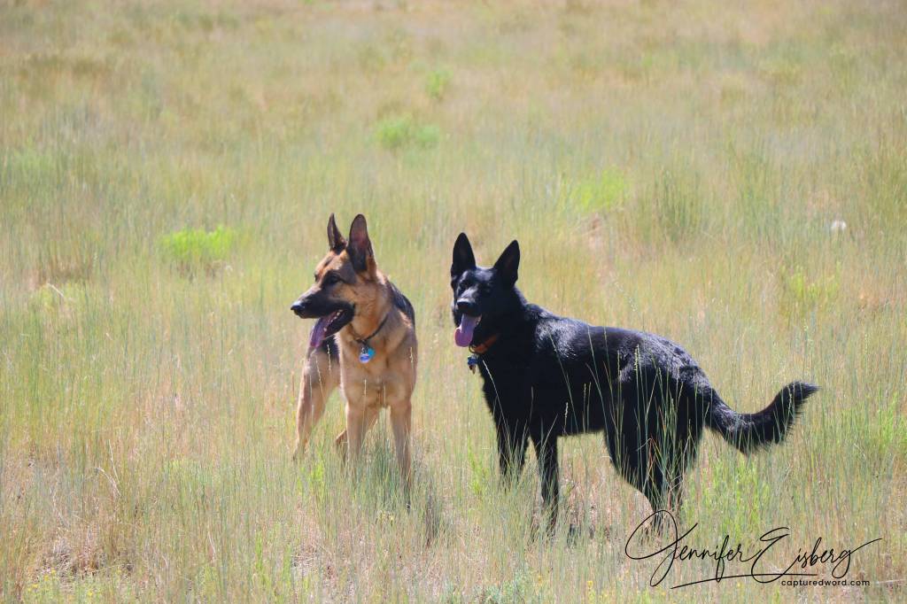 We were going up a mountain in Colorado and were surprised by the cowboys and cows coming down. Our German Shepherds were sitting in the back seat of the truck, one momentarily shocked into silence, while the other, our little warrior princess, sat next to him. She was practically vibrating on high alert as she worked to decide if these strange new creatures were friend or foe.